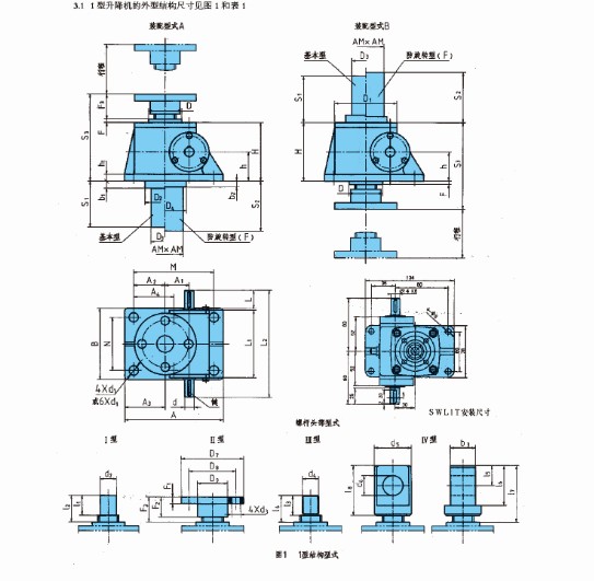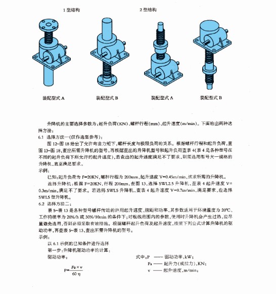 1型升降機螺桿的防護分為:基本型、防旋轉型(F)和帶防護罩型(Z);