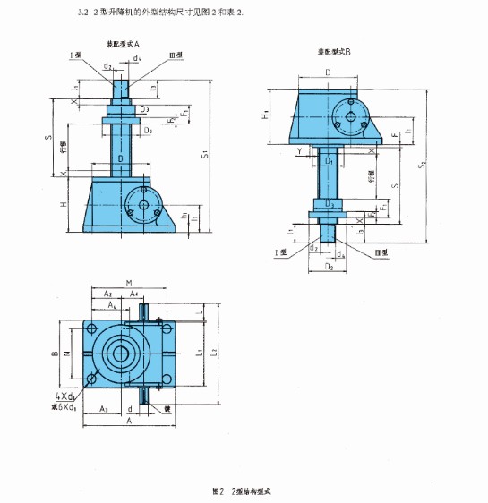 2型升降機螺桿的防護分為:基本型和帶防護罩型(Z)。