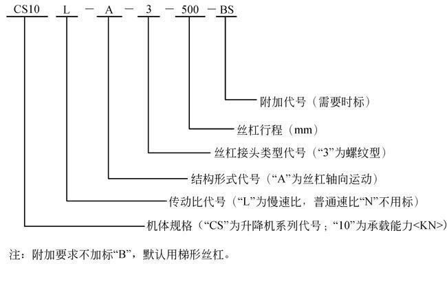 CS絲桿升降機形式、規(guī)格的表示